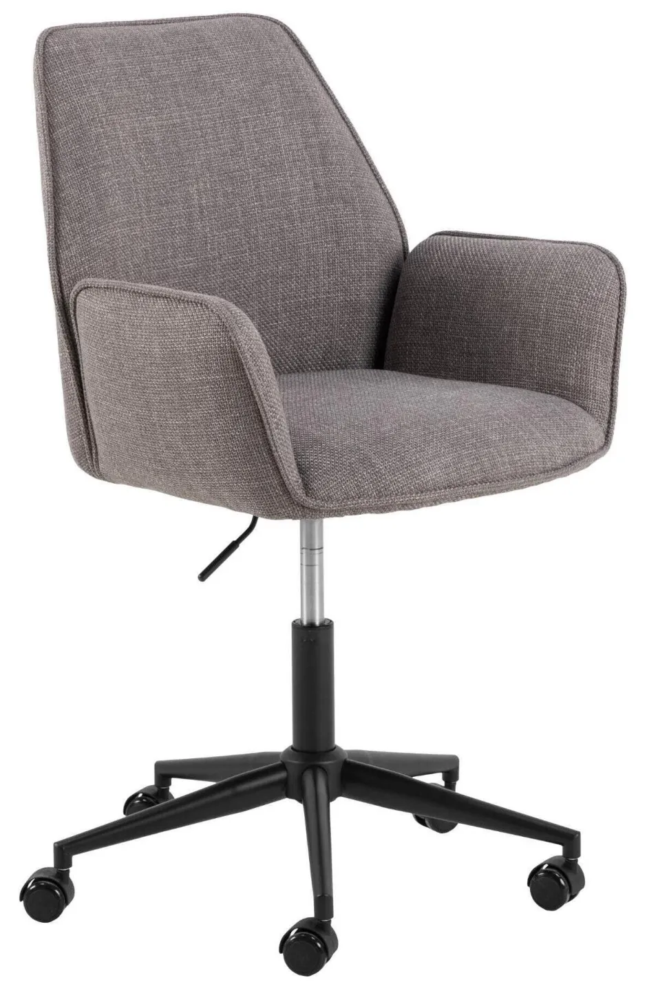 De in hoogte verstelbare bureaustoel met kantelfunctie, die elk thuiskantoor opfleurt met zijn eigentijdse silhouet, is versierd met een gestructureerde lichtgrijsbruine stof en een biesdetail, wat de stoel een gestructureerde look geeft. Aangevuld met de zwarte 5-ster draaivoet met remwielen, combineert de stoel stijl en functionaliteit.