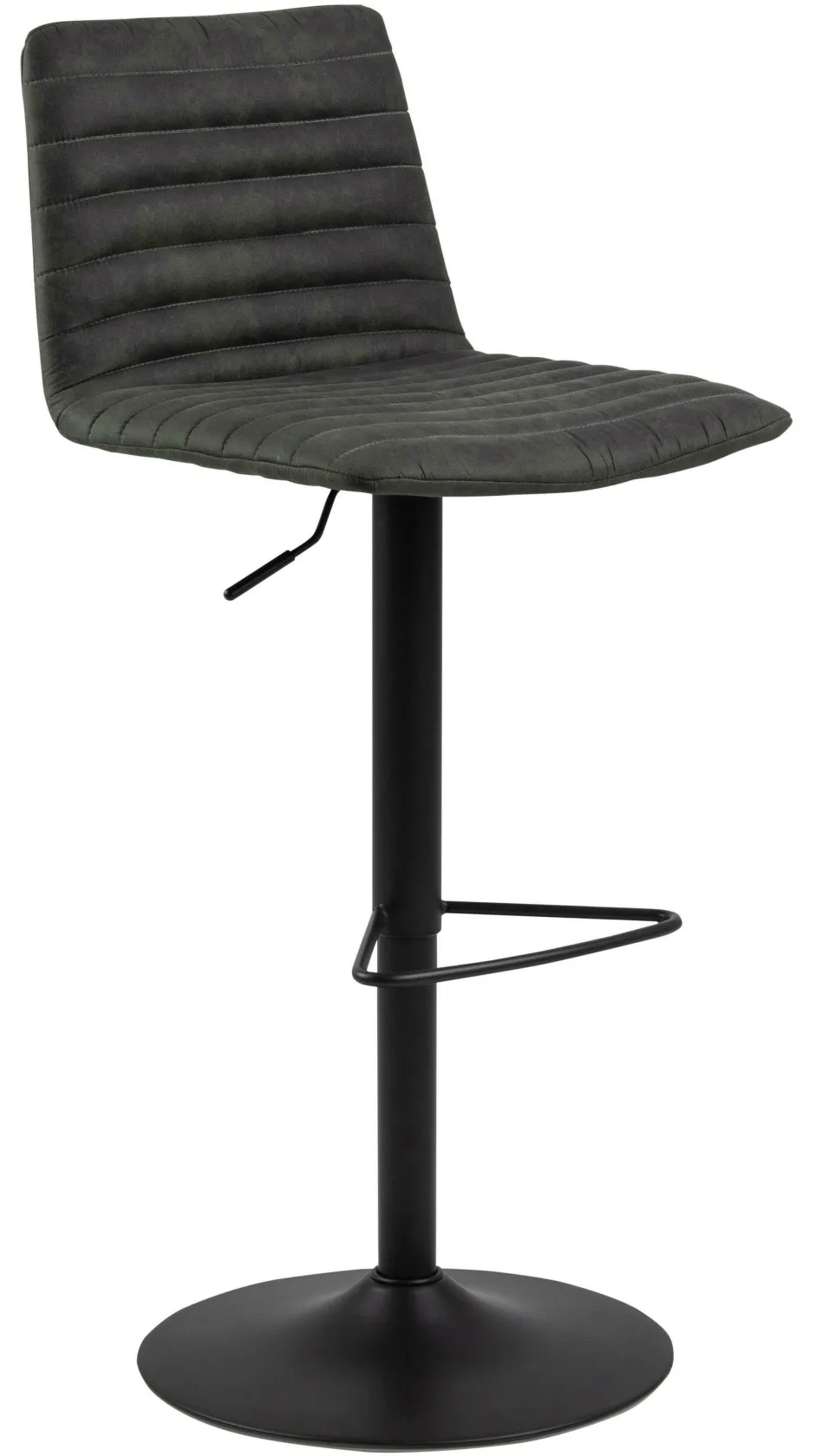 Een rechttoe rechtaan ontwerp met eenvoudige lijnen, waardoor een moderne barkruk met vierkante zitting is ontstaan. De zitting is bekleed met een zachte camelkleurige microvezelstof met een speciale coating en versierd met horizontale stiksels. Hij staat op een zwarte trompetdraaivoet die bijdraagt aan de algehele moderne allure.