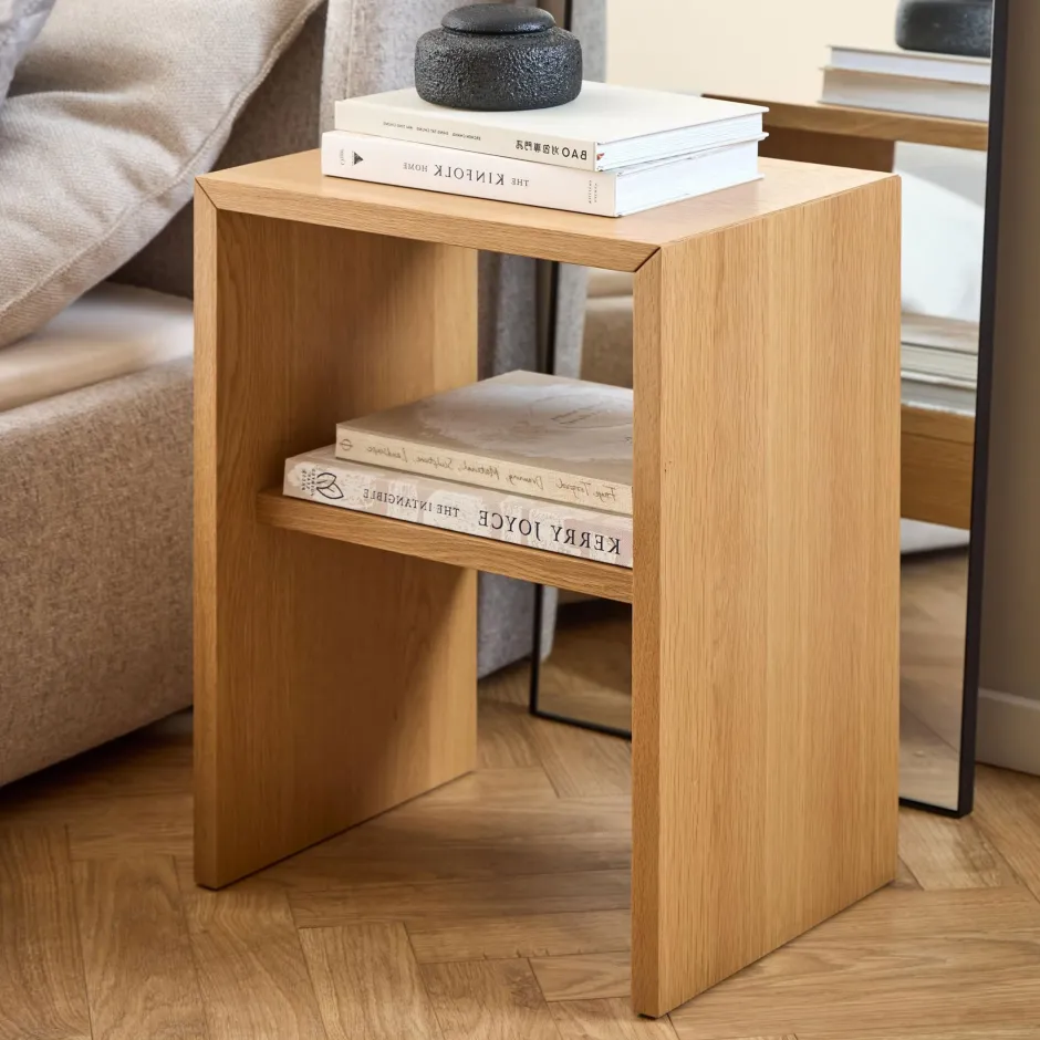 Minder is meer – en dit nachtkastje zal je slaapkamer zeker een upgrade geven. Let op de eenvoudige lijnen die het nachtkastje een exclusieve, minimalistische uitstraling geven. Het open vak onder het tafelblad biedt extra opbergruimte. Omarm de kunst van eenvoud met dit tijdloze ontwerp en breng warmte en stijl in je huis.