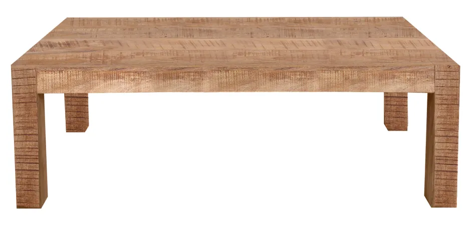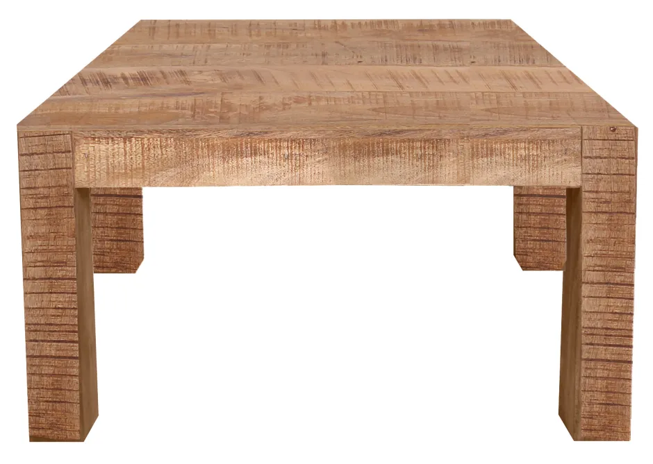 Deze serie van hoogwaardig mangohout in een edele natuurlijke tint maakt indruk met zijn lineaire en tijdloze ontwerp. Mangohout wordt gekenmerkt door een hoge hardheid, waardoor het veerkrachtig en duurzaam is. Bovendien heeft het hout een elegante uitstraling en een gevarieerde nerf. Het kleinere formaat van de salontafel is meer gereduceerd en ruimtebesparend dan de rechthoekige grote versie. Maar ook hier zijn de massieve poten van bovenaf zichtbaar, verwerkt in het tafelblad – dit kleine detail onderbreekt het tafelblad op elegante wijze. Een allround elegante en hoogwaardige tafel of bijzettafel voor je woonkamer of serre.