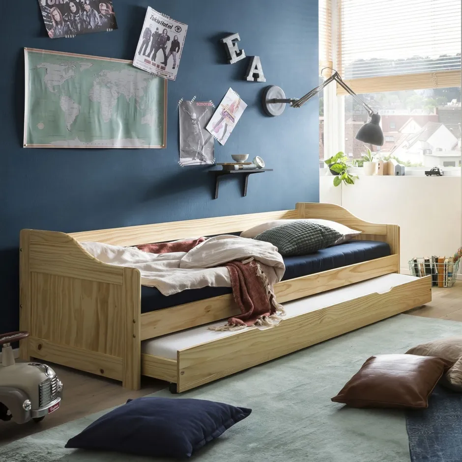 Het functionele bed heeft een ligoppervlak van 90 x 200 cm. In de uittrekbare lade, die op lichtlopende rollen loopt, is in een handomdraai een andere slaapmogelijkheid voor overnachtende gasten gecreëerd. Dit bed biedt voldoende ruimte en veiligheid om te slapen. De lattenbodems, die geschikt zijn voor een matrasmaat van 90×200 cm, worden meegeleverd. Dit eenpersoonsbed is perfect voor kamers met beperkte ruimte. Of het nu in de kinder- of logeerkamer is.