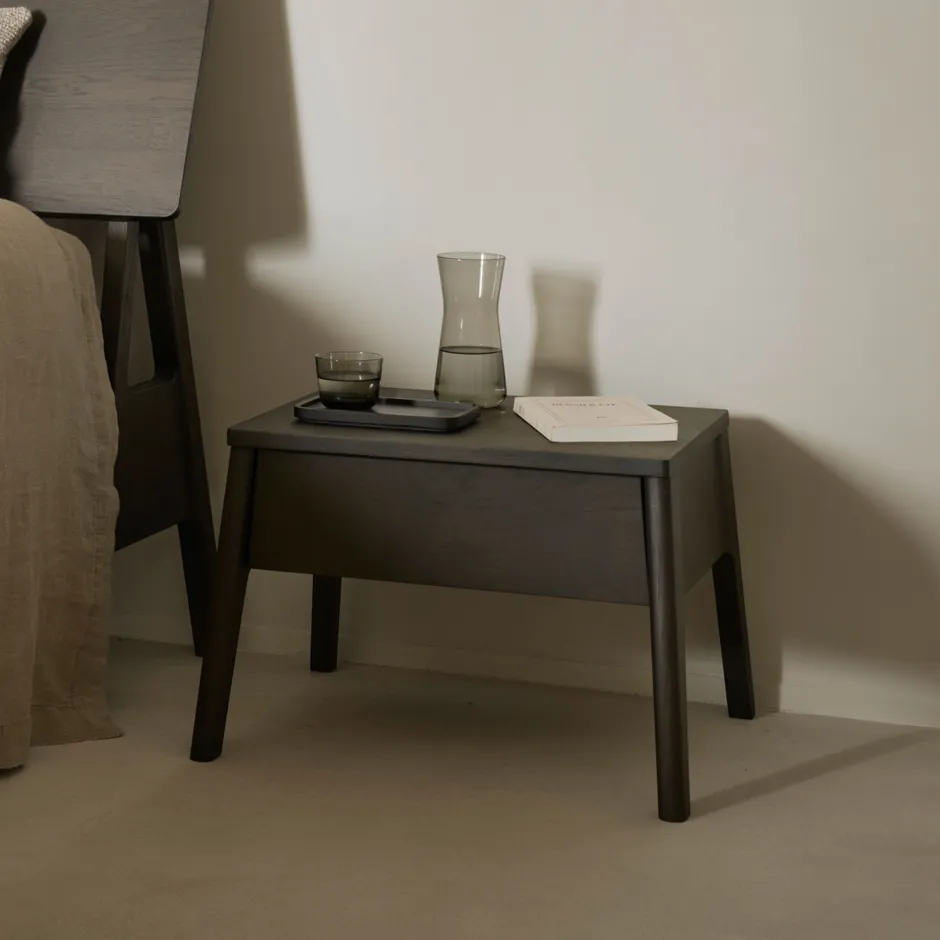 Dit eenvoudige maar elegante solide nachtkastje met één lade is de perfecte partner voor ieder bed, vooral het Air bed.
