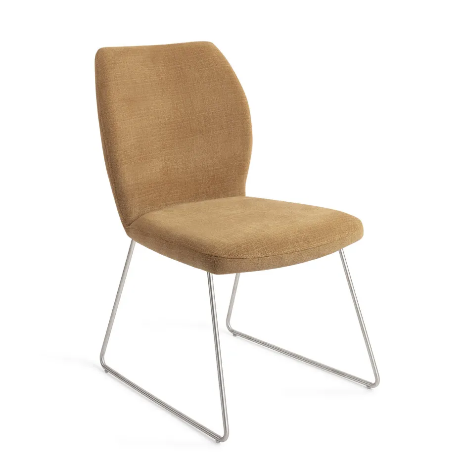 De Ikata eetkamerstoel kenmerkt zich door de zachte stoffering die in de verte iets weg heeft van luxe badstof. Het is een zachte, duurzame polyester die erg gebruiksvriendelijk is. De Ikata is verkrijgbaar in vier naturel kleuren.