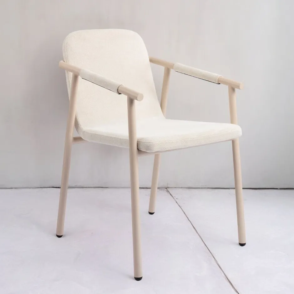 Een ander kenmerk van de Kochi eetkamerstoel is de armleuning, die is bekleed met hetzelfde materiaal als de zitting en is als het ware om de armleuning heen ‘gerold’. Dit geeft de stoel een speelse uitstraling en zorgt voor extra comfort tijdens het zitten.