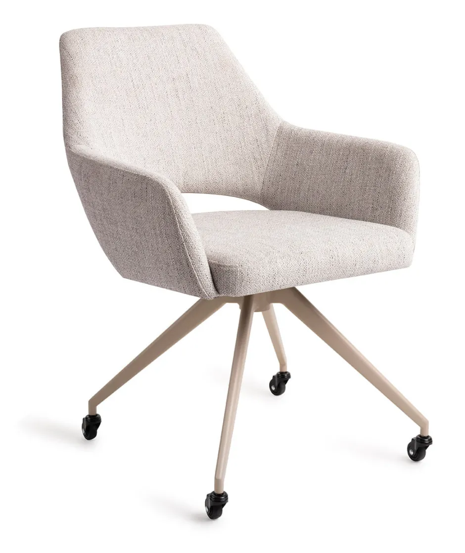 - Quad-onderstel – Centrale cilinder met vier uitlopende poten voor een sterke, evenwichtige look. Afwerkingen: beige, grijs.