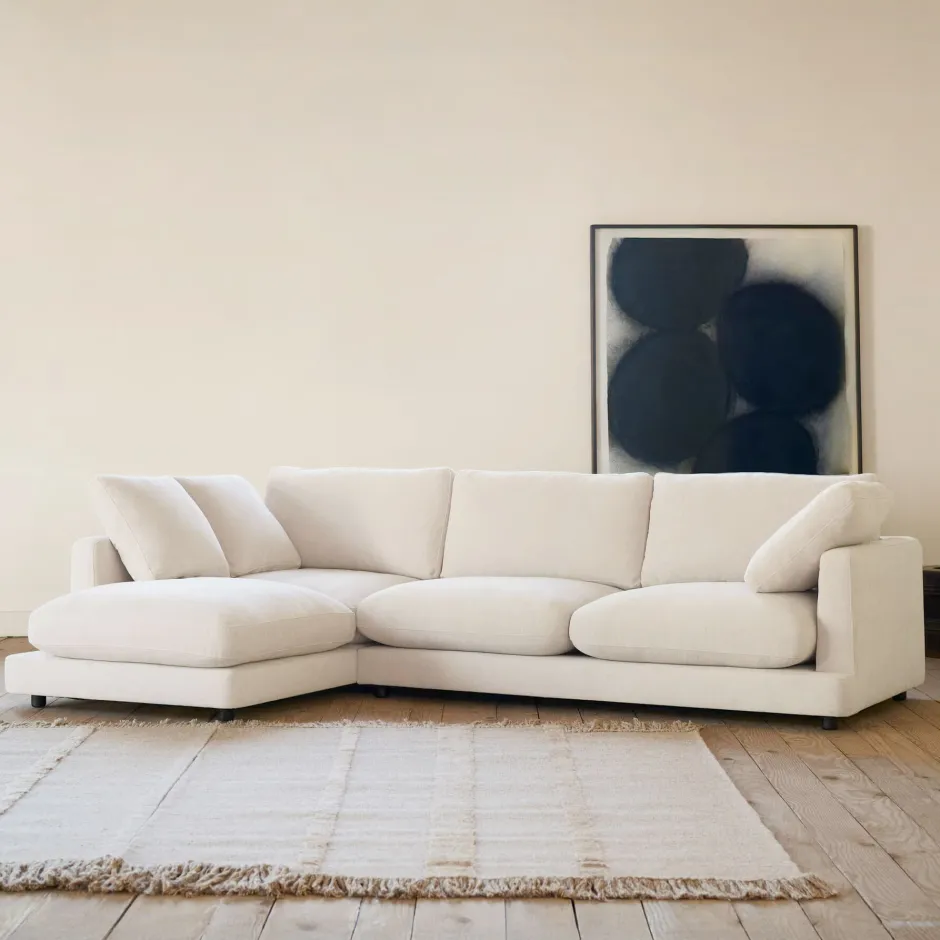 - Zacht zitcomfort dankzij de kussens die zijn gevuld met nieuwe vezels met donseffect en 100% siliconen, en een schuimkern met een dichtheid van 30kg/m3. De zittingen, rugleuningen en kussens hebben afneembare hoezen en zijn omkeerbaar.