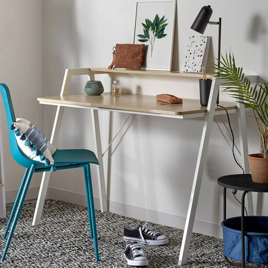 Het tafel Aarhus is een stalen structuur met een blad van natuurlijk hout. Daarnaast heeft hij een plank van dezelfde grootte, zodat je meer plaats hebt voor je bureau-artikelen. Work hard, live passion.