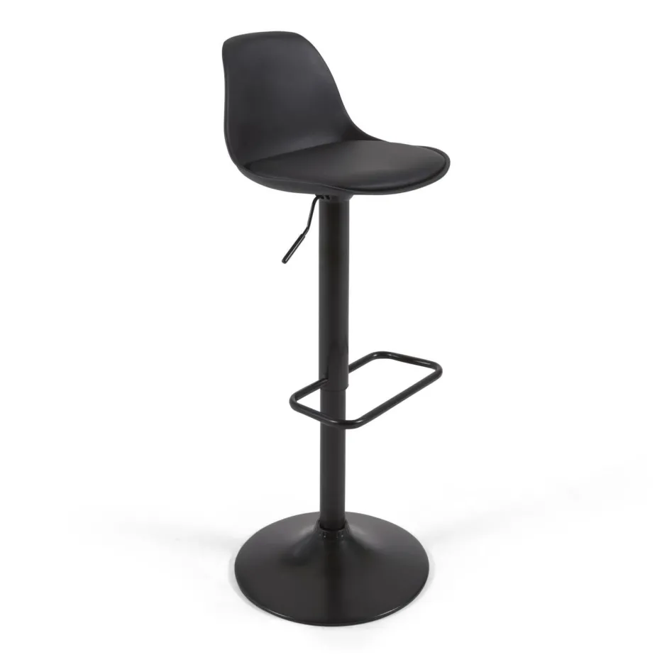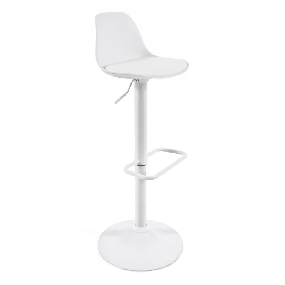 - Barkruk met stalen onderstel, polypropyleen draaibare zitting en in hoogte verstelbare hendel.