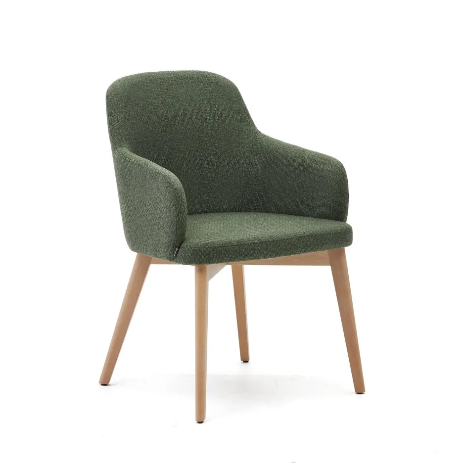 Het massieve beukenhouten ontwerp, de chenille bekleding en de zachte rugleuning met geïntegreerde armleuningen zorgen voor maximaal comfort. Het tijdloze ontwerp van de Nelida past uitstekend in een stijlvolle eetkamer.