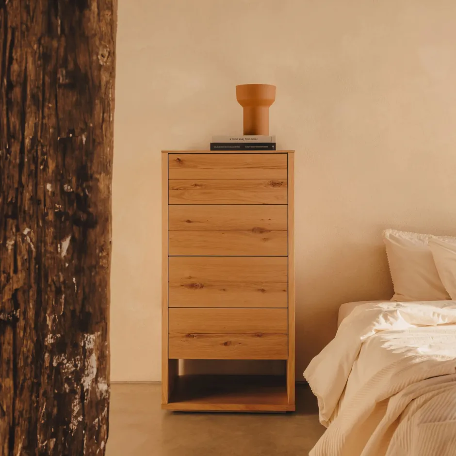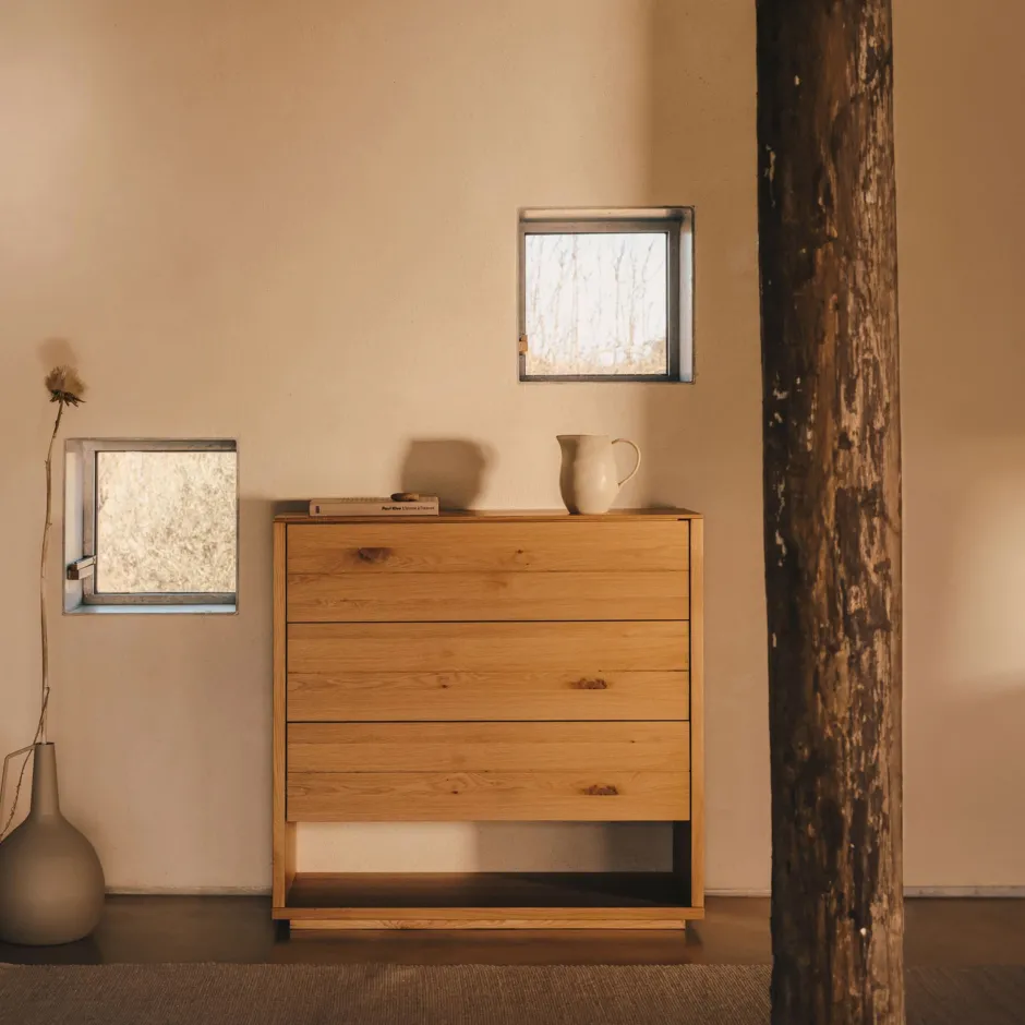 - Ladekast in eikenfineer met natuurlijke afwerking.