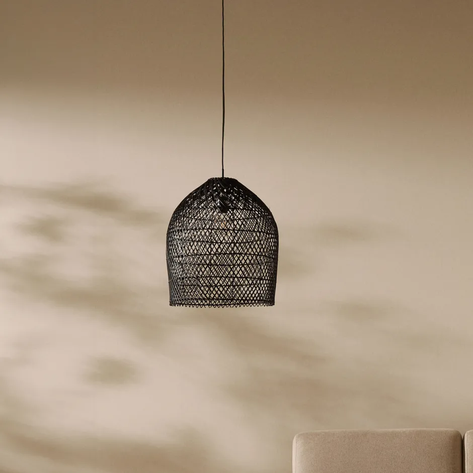- Plafondlamp in rotan met natuurlijke afwerking.