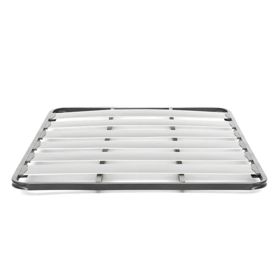 - Lattenbodem met metalen structuur in grafietkleur.
