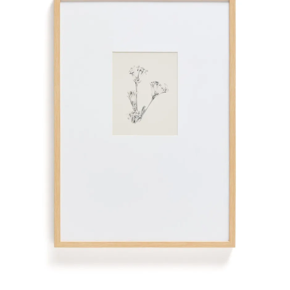 Dit schilderij valt op door de gedrukte illustratie in botanische stijl, uitgevoerd in potlood met een patroon dat doet denken aan traditionele graveertechnieken. Elke streek weerspiegelt de precisie en delicatesse van klassieke botanische tekeningen en brengt karakter en verfijning in de kamer. De illustratie is gevat in een breed passe-partout dat hem omlijst, voor elegantie zorgt en de afbeelding laat ademen, voor een evenwichtig en tijdloos visueel effect. Een veelzijdig werk voor wie op zoek is naar decoratieve kunst met een subtiele aanwezigheid.