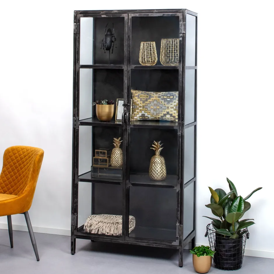 Best LifestyleFurn Industriële Vitrinekast Rift Metal 90 x 190cm Gun metal