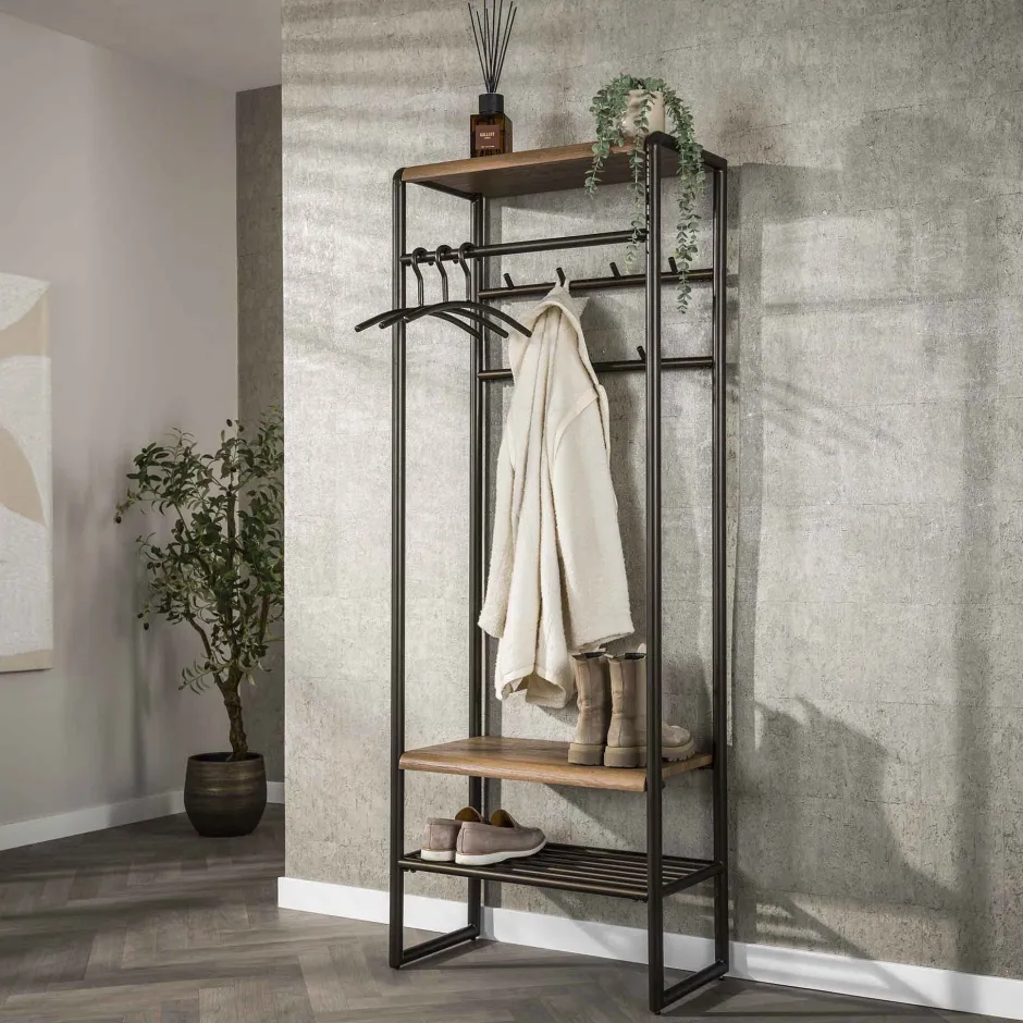 Best LifestyleFurn Staande Kapstok Karalynn Met haken en roede, Eikenlook en staal Drift brown