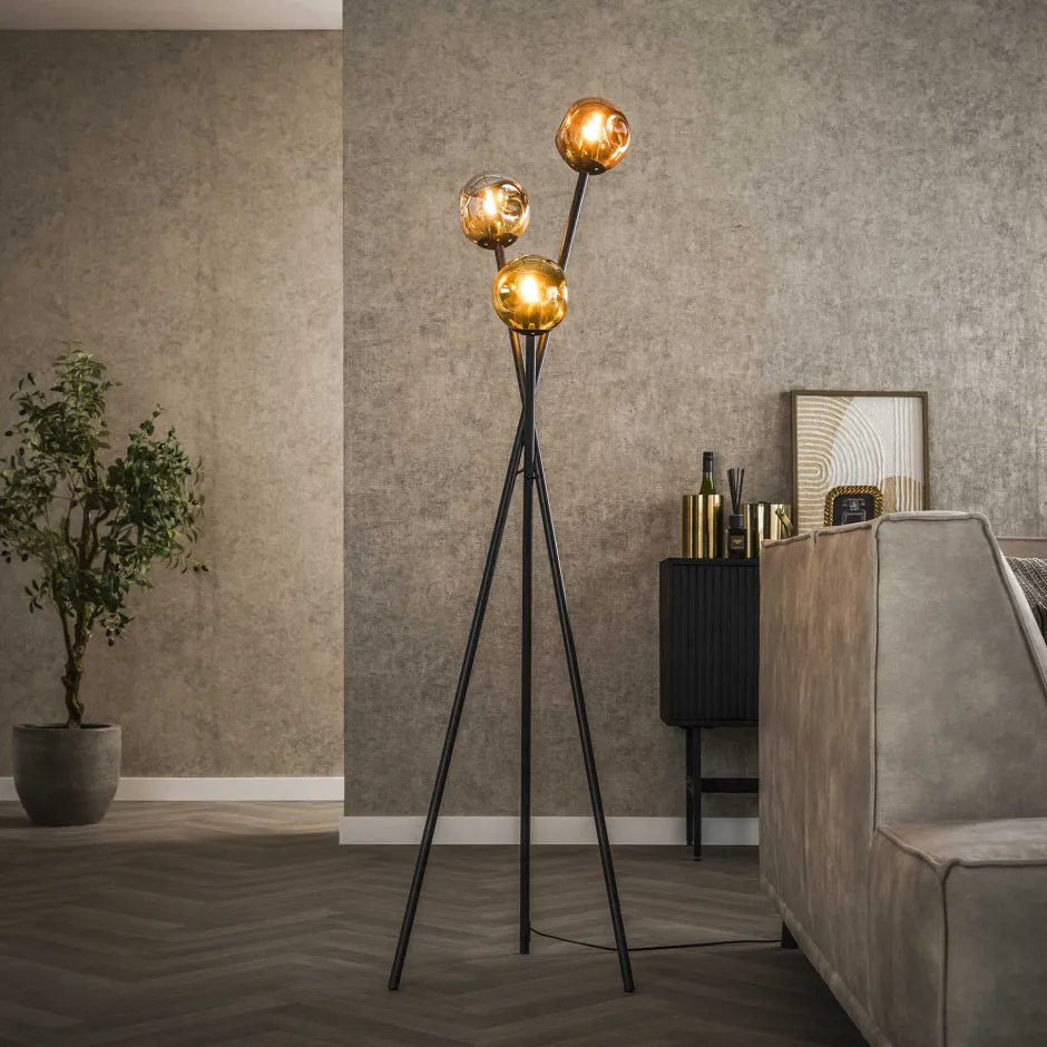 Best LifestyleFurn Vloerlamp Shahid Glas, 3-lamps Artic zwart