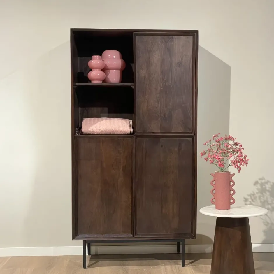 Merk:LivingfurnMateriaal:Gelakt mangohout en gecoat stalen onderstelBreedte:90cmHoogte:170cmDiepte:40cmAanwezig in de Co…