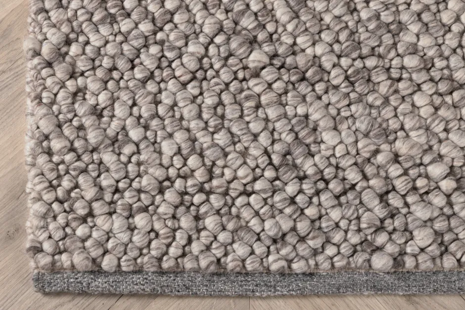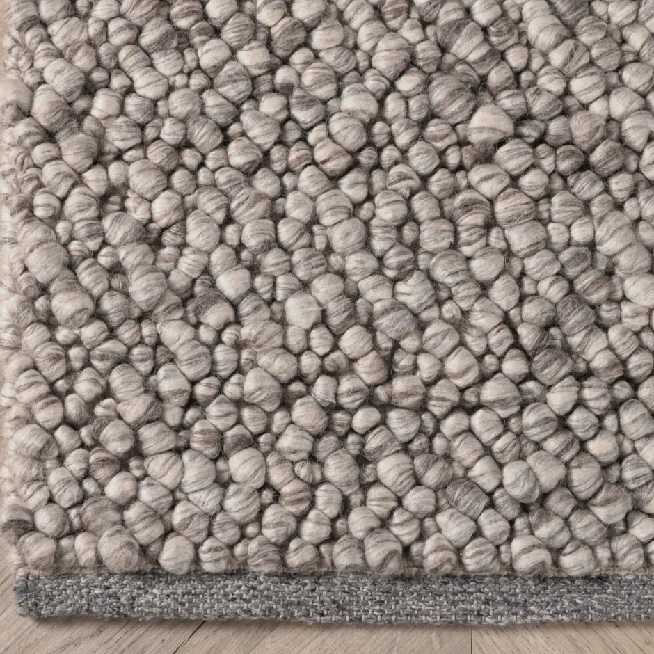 Exclusieve dikke wollen mat uit de serie Ilia in een prachtig kleurveranderend patroon van lichtgrijze tinten. Gemaakt v…