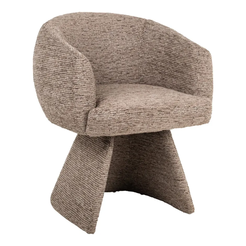 Eetkamerstoel Quiriro heeft een volledig gestoffeerde basis met een zachte, afgeronde rugleuning. De mocca linear-stof en de verborgen draaifunctie geven hem een chique, elegante uitstraling. Ook verkrijgbaar in biscotti.