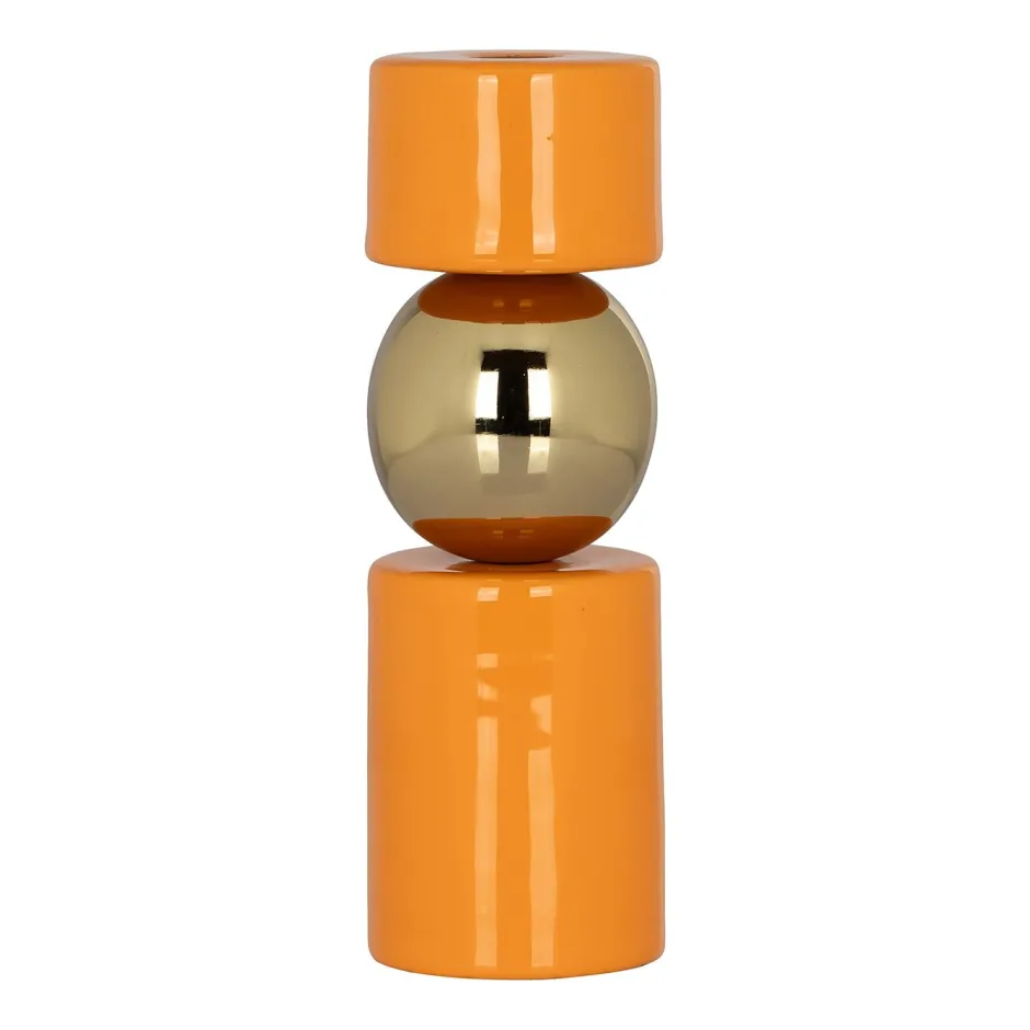 Deze opvallende oranjekleurige kandelaar is vervaardigd uit duurzaam ijzer en verrijkt met prachtige details die het ont…