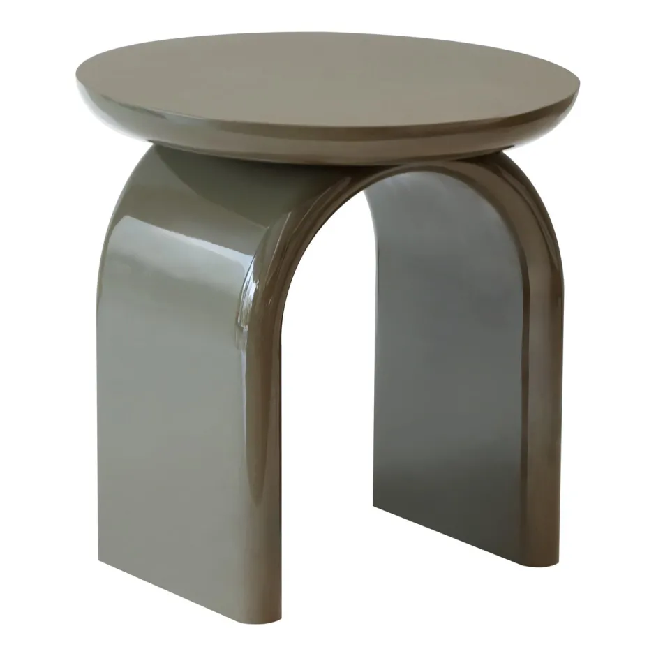Deze bijzettafel heeft een compacte vorm met afgeronde lijnen en een gesloten uitstraling. De lichte kleur zorgt voor een rustige en neutrale aanwezigheid in het interieur. Door het eenvoudige silhouet is de tafel geschikt voor plaatsing naast een zitmeubel of in een hoek van de ruimte.
