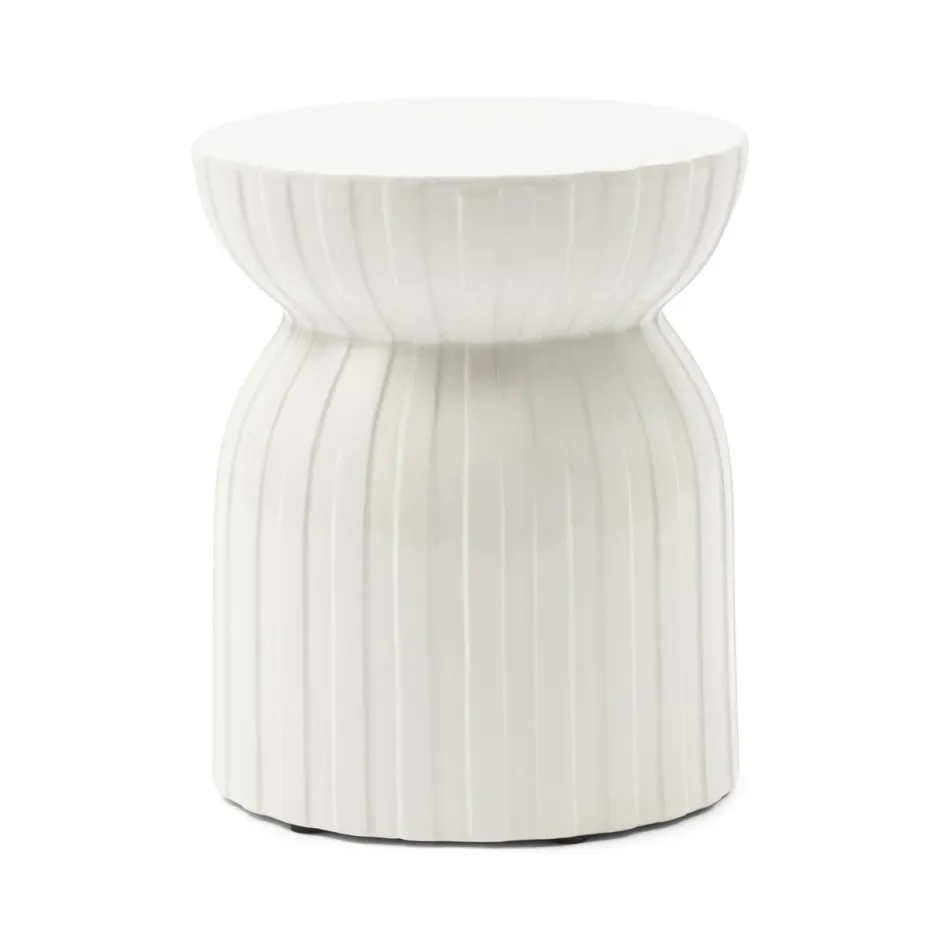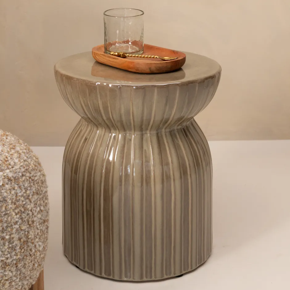 De Sintra bijzettafel van Rivièra Maison is een verfijnd designobject dat direct sfeer toevoegt aan je interieur. Gemaakt van keramiek straalt deze tafel een subtiele luxe uit, terwijl het karakteristieke streeppatroon zorgt voor een speels en modern accent. De ronde vorm met een diameter van 35 cm geeft het geheel een zachte, harmonieuze uitstraling die mooi contrasteert met strakkere lijnen in de ruimte.