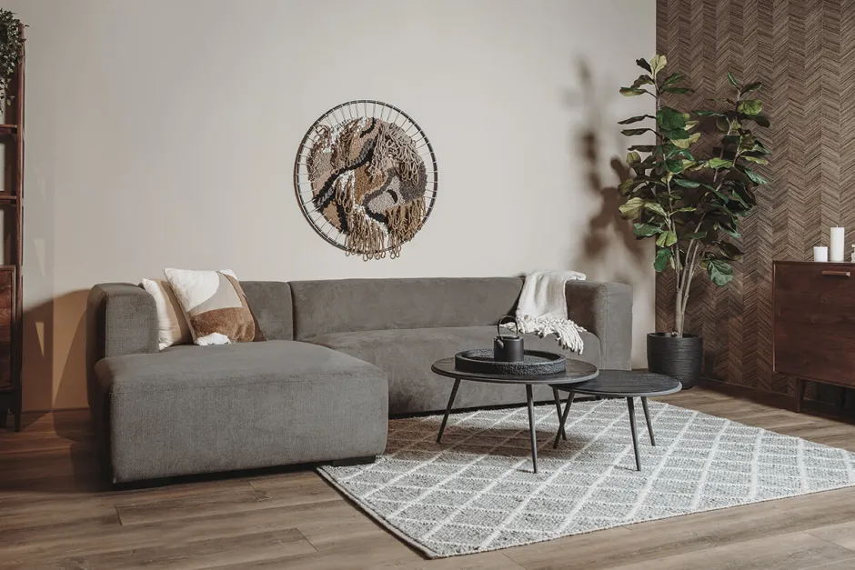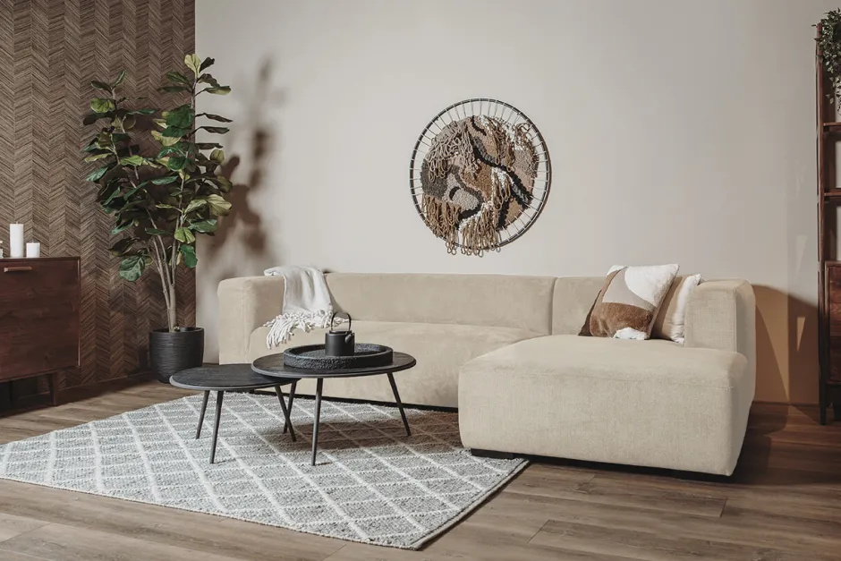 De zitting bestaat uit nosag- en pocketvering, is afgedekt met koudschuim en bekleed met de stof Enjoy. Deze zachte geweven stof staat niet alleen prachtig, maar is ook nog eens heerlijk zacht. Kies zelf aan welke kant je het lounge gedeelte wil, benen omhoog en relaxen maar.