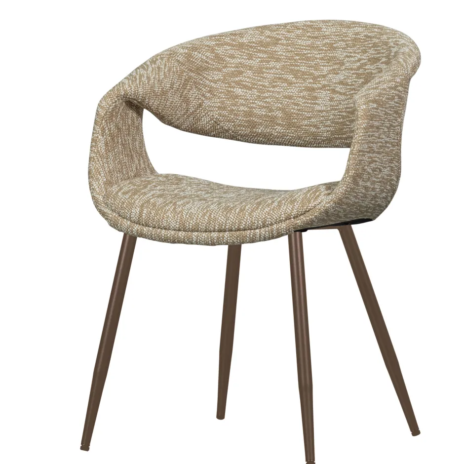 De Yossi eetkamerstoel is afkomstig uit de collectie van het Nederlandse merk WOOOD heeft een metalen onderstel en comfortabele zit. De stoel is in verschillende uitvoeringen verkrijgbaar, zodat je de perfecte match voor jouw interieur kunt vinden. De Yossi is bekleed met een geweven stof van 100% polyester. Een leuk detail van de stoel is de afwerking rondom de armleuning. Een stijlvolle en comfortabele eetkamerstoel om urenlang te tafelen.