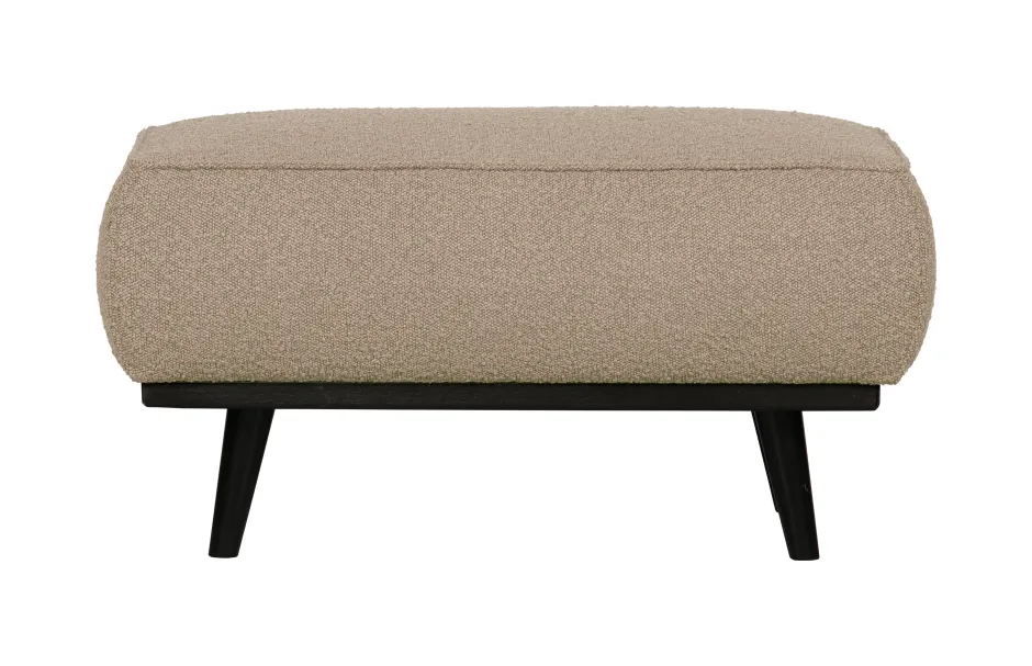 Deze hocker past perfect bij de Statement fauteuil en banken uit de collectie van WOOOD. De serie Statement biedt een goede basis voor meerdere woonstijlen. Het design van Statement is basic, maar valt door de robuuste zitting wel op. Deze hocker zit heerlijk comfortabel en is perfect te gebruiken als voetenrust bij de banken of de fauteuil. De Statement hocker is bekleed met een bouclé stof (100% PES) in een beige kleur en dat geeft de hocker een elegante uitstraling en voelt heerlijk aan. De hocker is beschikbaar in meerdere stoffen en kleuren.