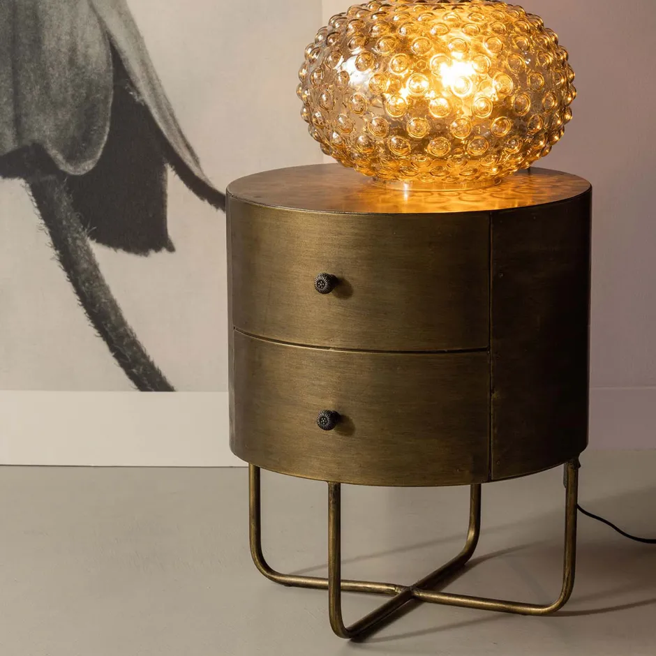 Nachtkastje ‘Glossy’ van WOOOD is een opvallend en stijlvol meubel met een luxe uitstraling. Vervaardigd uit metaal en voorzien van een antique brass coating, straalt dit ronde kastje warmte en karakter uit. De twee lades bieden ruimte voor het opbergen van kleine spullen en zijn naadloos geïntegreerd in het ontwerp.