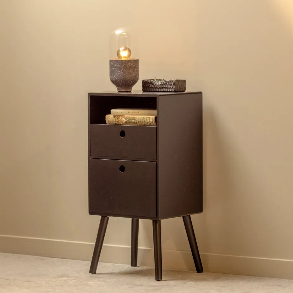 Het Ozzy nachtkastje komt uit de collectie van het Nederlandse interieurmerk WOOOD en is onopvallend stijlvol door het eenvoudige design. Het gebruik van het afgelakte MDF hout zorgt ervoor dat het nachtkastje kalmte uitstraalt en zich gemakkelijk in de stijl van jouw slaapkamer voegt.
