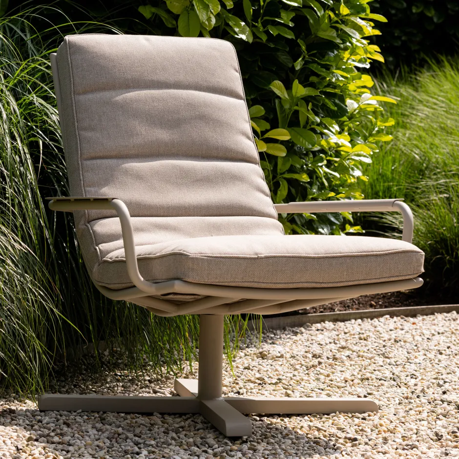 Comfortabel loungen in de Coosa outdoor fauteuil uit de collectie van het outdoor merk WOOOD. Coosa heeft een stabiele stand en is lichtgewicht door het gebruik van aluminium. Het frame heeft een trendvolle zandkleurige, matte poedercoating. Het kussen is bekleed met een all weather buitenstof, kun je dus mooi het hele buitenseizoen laten liggen!