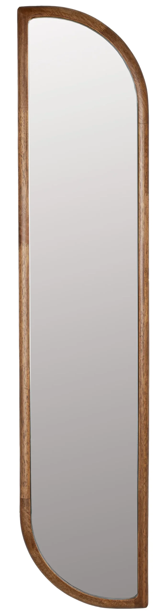 Spiegel ‘Rania’ van ZILT is een stijlvolle, smalle spiegel met een opvallende, organisch gevormde rand van rubberhout. De natuurlijke houttint en zachte lijnen zorgen voor een warm en eigentijds karakter. Door de bijzondere vorm breekt Rania met standaard spiegelontwerpen en voegt het een speels, artistiek accent toe aan elke ruimte.