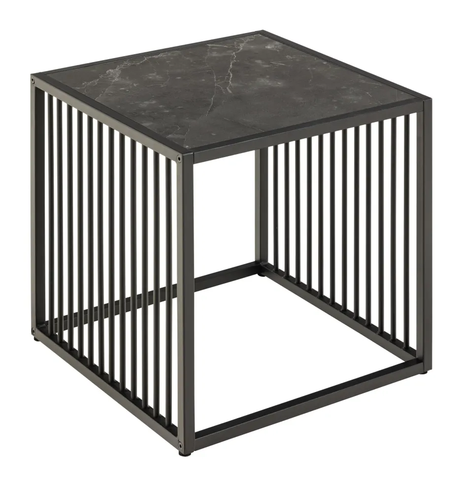 Wie had gedacht dat een bijzettafel zo cool kon zijn. Zo’n ontwerp maakt gemakkelijk een statement in elk modern huis. Het zwart metalen frame heeft verticale metalen latten aan 2 zijden, terwijl het tafelblad je charmeert met de zwarte marmeren look. Stijl de tafel met je favoriete vaas of plant om hem persoonlijk te maken.