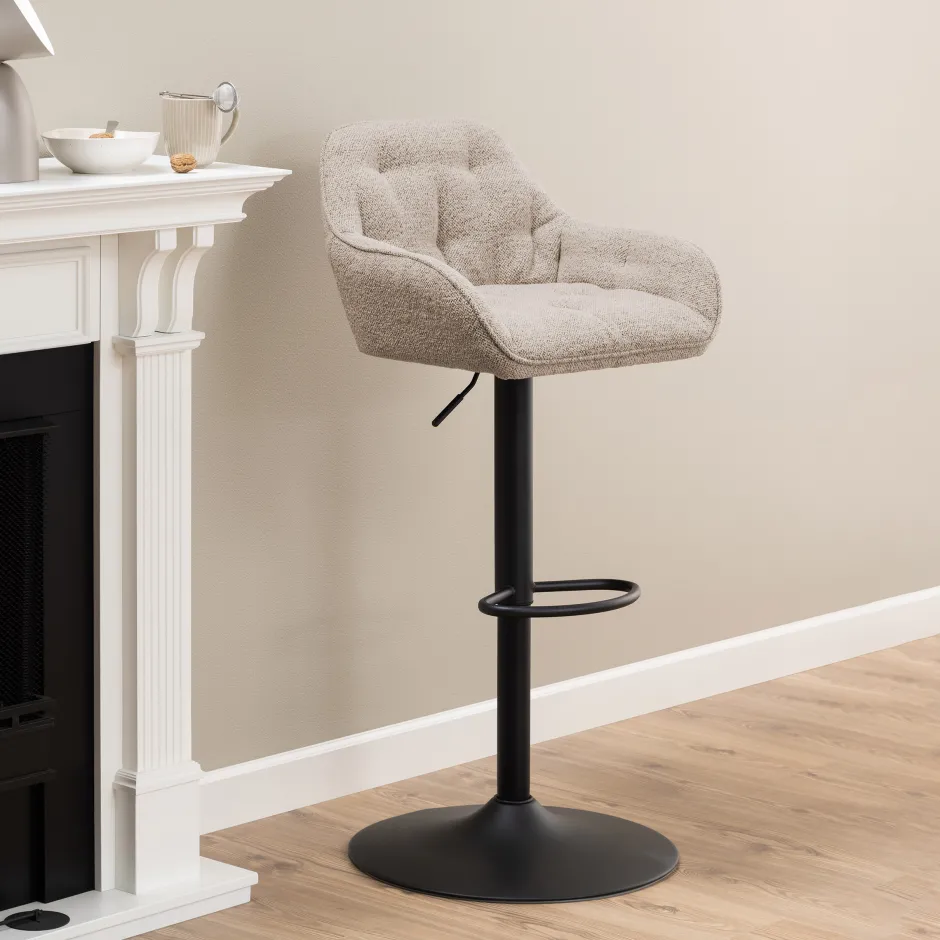 Of je er nu ’s ochtends ontbijt of ’s avonds een drankje drinkt, barkruk ‘Loren’ is de perfecte aanvulling voor in elke keuken en eethoek. De kruk is bekleed met een zachte bouclé stof. Deze stof zien we nog steeds erg veel terug in het interieur en dat is niet voor niks. Bouclé voelt heerlijk zacht aan, heeft een trendy look en is ook nog eens makkelijk te onderhouden.