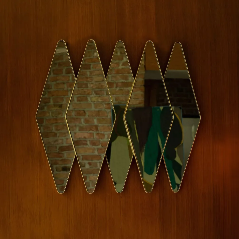 Wil je een wand omtoveren tot jouw favoriete plek in huis? Dan is de Dutchbone Kyoko de perfecte keuze. Deze bijzondere spiegel voegt met zijn unieke design namelijk direct meer karakter toe aan de ruimte. De spiegel bestaat uit een reeks van vijf ruitvormige spiegels met afgeronde hoeken, die samen één geheel vormen. Het geometrische patroon dat hierdoor ontstaat, doet direct denken aan de jaren 70 en zorgt dan ook voor een fijne vintage feel. Dat gevoel wordt compleet gemaakt door de messingkleurige rand, waarmee de spiegels stuk voor stuk zijn afgewerkt. Hiermee is de spiegel een waar kunstwerk te noemen, waarmee je de kamer zowel ruimtelijker als sfeervoller maakt.