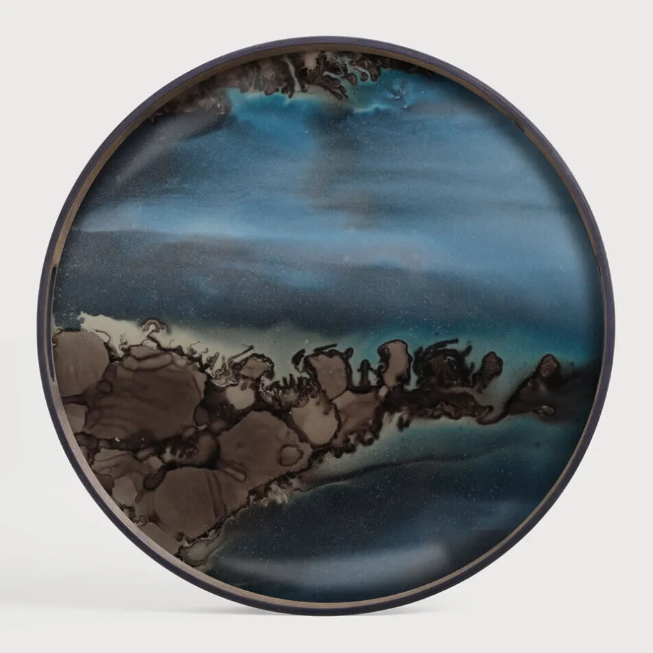 Clearance Ethnicraft Rond Dienblad Linear Flow kleur Slate Slate Grey