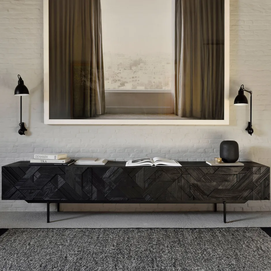Clearance Ethnicraft TV-meubel Graphic Gevernist Teakhout Zwart