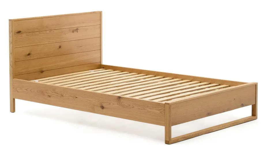 - Bed van eikenfineer met naturel afwerking voor een matras van 180 x 200 cm.