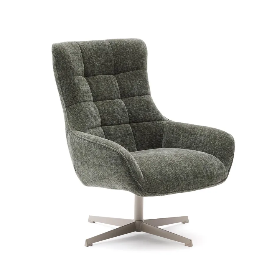 - Draaifauteuil met gevoerde armleuningen bekleed met chenille stof met lichte structuur en zachte touch in de kleur beige.