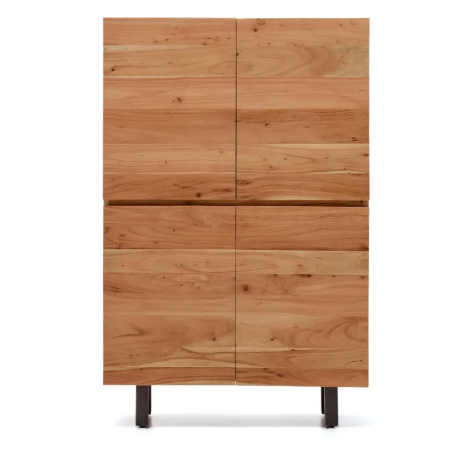 De Uxue collectie herdefinieert functionaliteit en stijl in elke ruimte met zijn strakke, eigentijdse ontwerp. Het massieve acaciahout met gebleekte afwerking straalt een unieke warmte uit en benadrukt de houtnerf, wat licht en verfijning in de kamer brengt. Elke deur is perfect geïntegreerd in het geheel, waardoor een harmonieus en minimalistisch beeld ontstaat dat zich aanpast aan elk type decoratie, van de meest moderne tot de meest klassieke. De zwart afgewerkte stalen poten zorgen voor een elegant en subtiel contrast, verheffen de structuur en zorgen voor stabiliteit en duurzaamheid. De poten zijn verstelbaar, zodat oneffenheden in de vloer kunnen worden overbrugd en het dressoir altijd perfect waterpas staat. De soft-close scharnieren bieden comfort en veiligheid bij het openen en sluiten en beschermen zowel het meubel als de inhoud. Dit dressoir is de perfecte oplossing voor wie op zoek is naar opbergruimte, tijdloos design en robuustheid in één meubelstuk. Hiermee wordt het de onbetwiste protagonist van elke kamer.