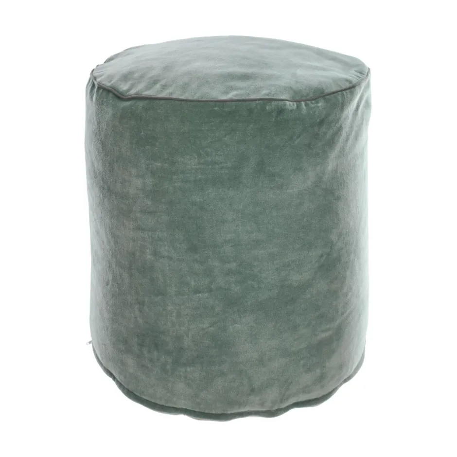 - Velvet poef, comfortabel en makkelijk te verplaatsen.