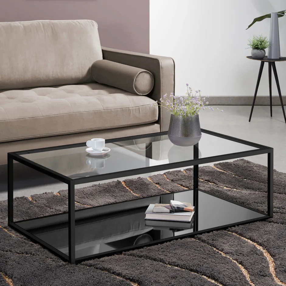 Clearance Kave Home Salontafel Blackhill Glas met zwart frame