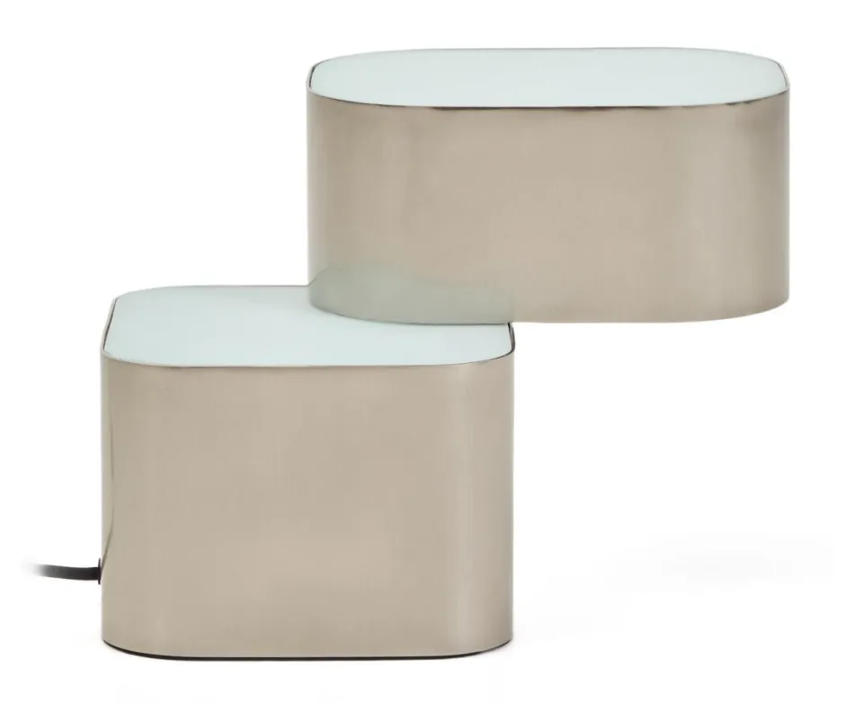 De Tandan tafellamp van grijs metaal met geborstelde afwerking biedt balans en rust door de asymmetrie van het ontwerp. Het spel van gestapelde volumes genereert een dynamische maar ingetogen compositie die beweging suggereert en visuele harmonie behoudt. De diffusors van doorschijnend glas dempen het licht en creëren een serene en verzorgde sfeer. De bekabeling wordt beschermd door een zachte en flexibele buitenlaag, die knoopvorming voorkomt en het dagelijks gebruik vergemakkelijkt. De lamp is compatibel met E14-lampen van max. 4,2 W. Deze zijn apart verkrijgbaar. De diffusors zorgen voor een homogene verlichting en voorkomt schittering. We richten ons op het creëren van functionele en esthetische producten, ontworpen voor elk moment en elke ruimte.