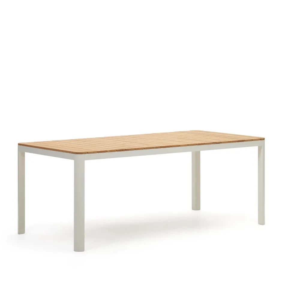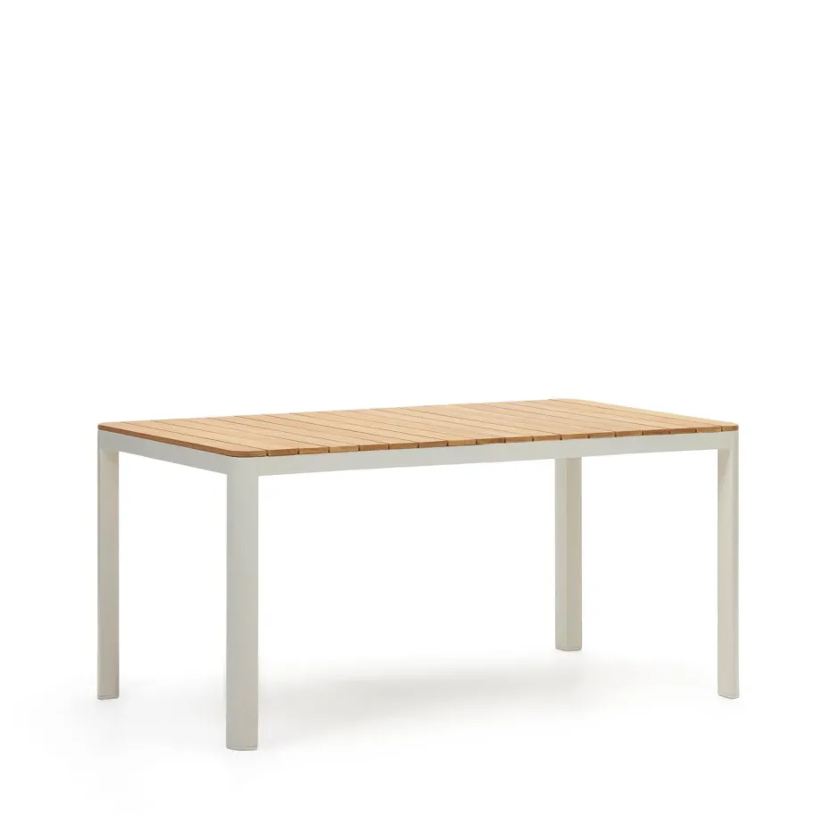 - Aluminium tafel met massief teakhouten tafelblad.