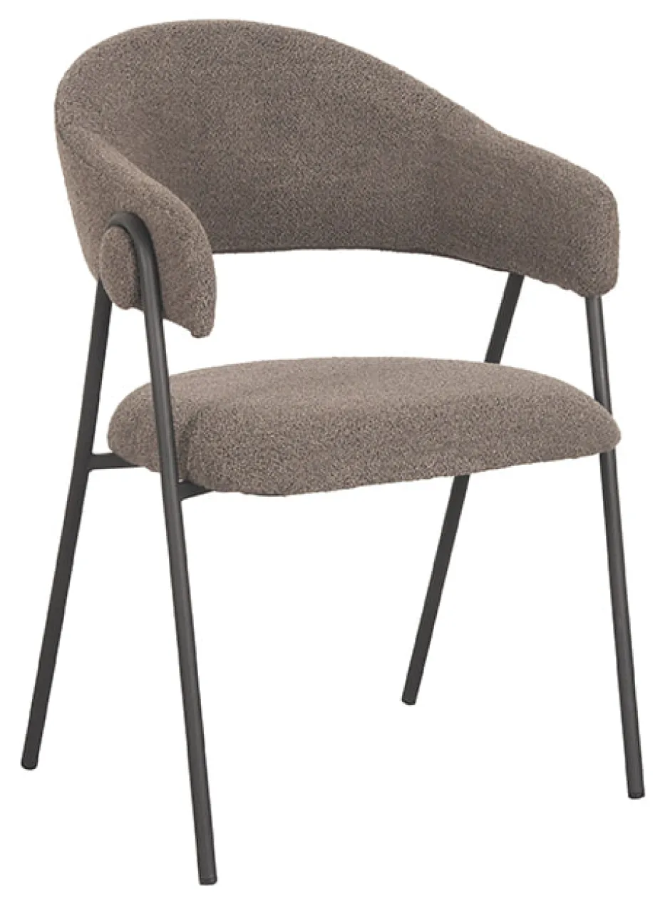 Eetkamerstoel Lowen, uitgevoerd in naturel bouclé bestaat uit een aparte zitting en ronde rugleuning die vanuit de rug doorloopt in armleuningen. Aan beide zijden van de rugleuning bevindt zich een speelse ‘knoop’. Het frame, uitgevoerd in zwart metaal, die de verbinding vormt tussen zitting en rugleuning, is om deze ‘knoop’ heen gedraaid. Deze gave toevoeging zorgt ervoor dat Lowen een uniek uiterlijk heeft, met aan alle kanten een fantastisch uiterlijk. Naast het gave uiterlijk heeft Lowen een super stabiele en comfortabele zit.