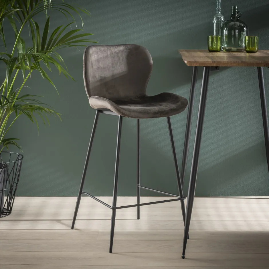 Deze barstoel is uitgevoerd in zowel velvet als bouclé en heeft een metalen onderstel met geïntegreerde voetensteun voor extra comfort. Het model is ook verkrijgbaar als bijpassende eetkamerstoel onder artikelnummer 3738.