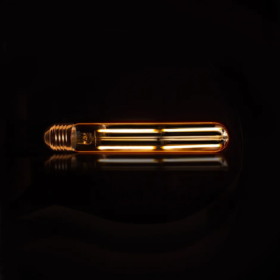 Deze lichtbron LED filament heeft amberkleurig glas en heeft de vorm van een buis en is 18,5 centimeter lang. Aangezien deze lichtbron een lichtkleur van 2100K heeft, geeft hij extra warm licht. De lichtbron is dimbaar.
