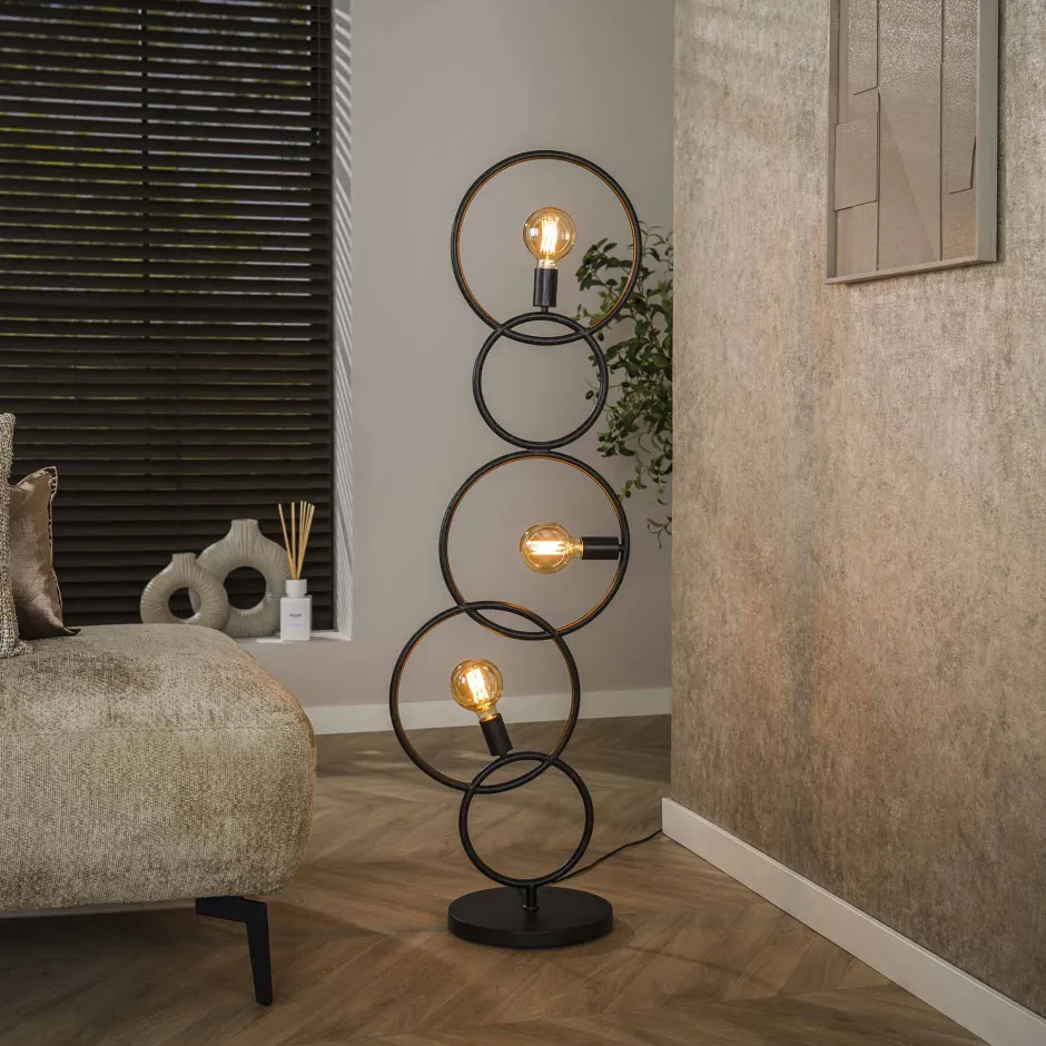 Clearance LifestyleFurn Vloerlamp Davion 3-lamps, Artic Black finish Artic zwart