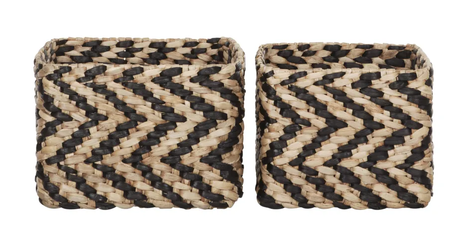 Clearance MUST Living Mand Basket Waterhyacint, Set van 2 stuks Zwart, Naturel
